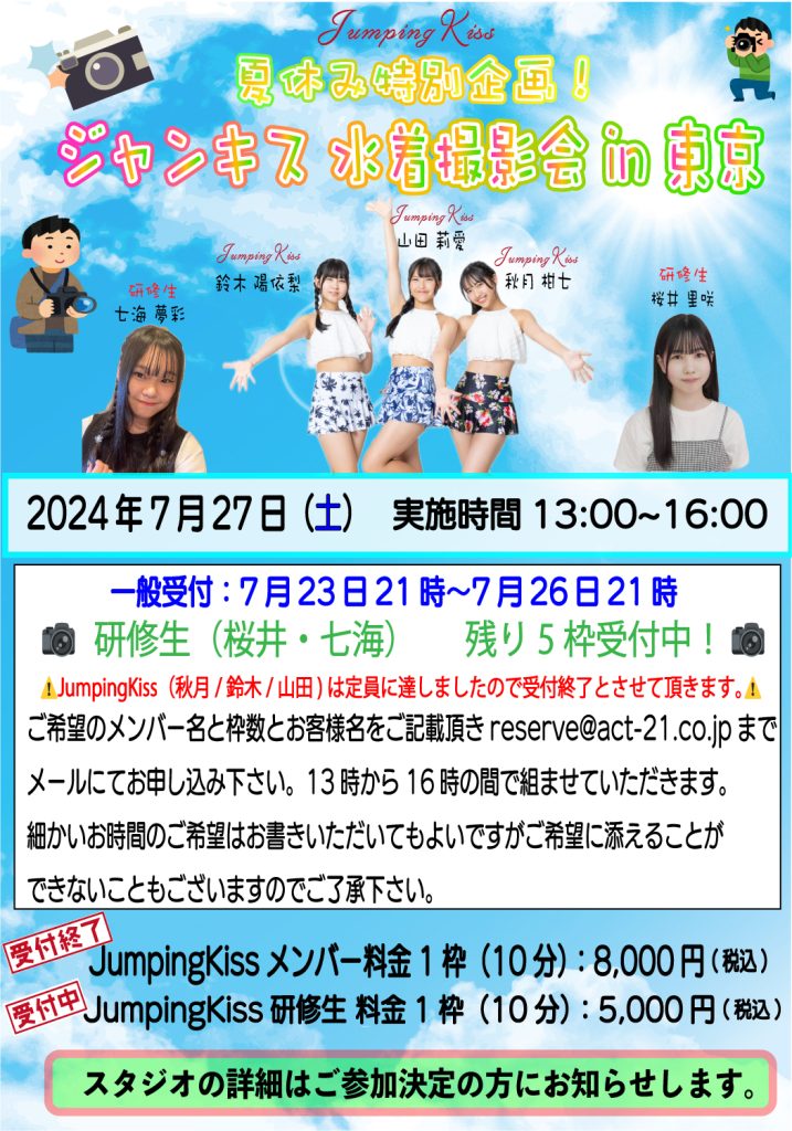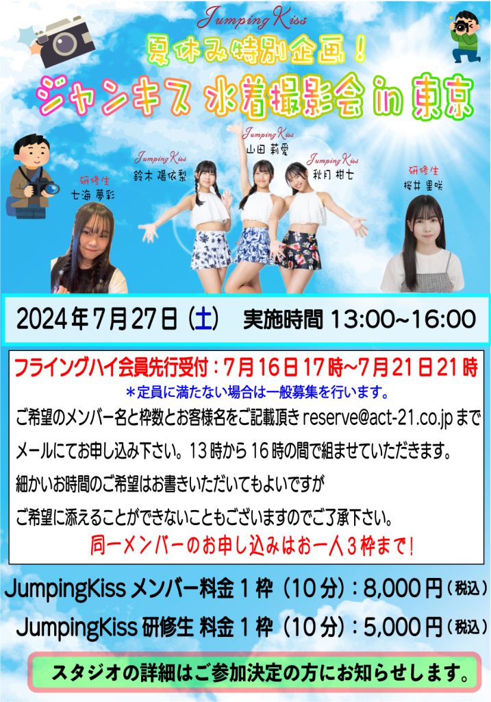 7月27日(土)夏休み特別企画!ジャンキス水着撮影会 in 東京