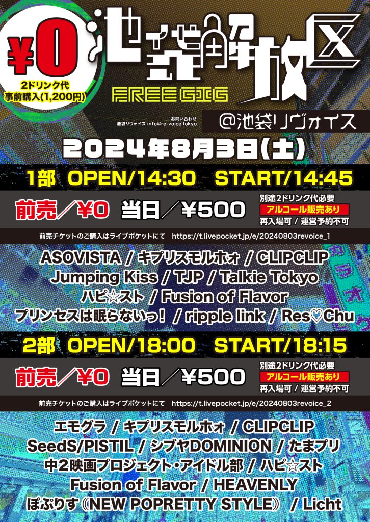 8月3日(土)池袋解放区 -FREE GIG-(第一部)