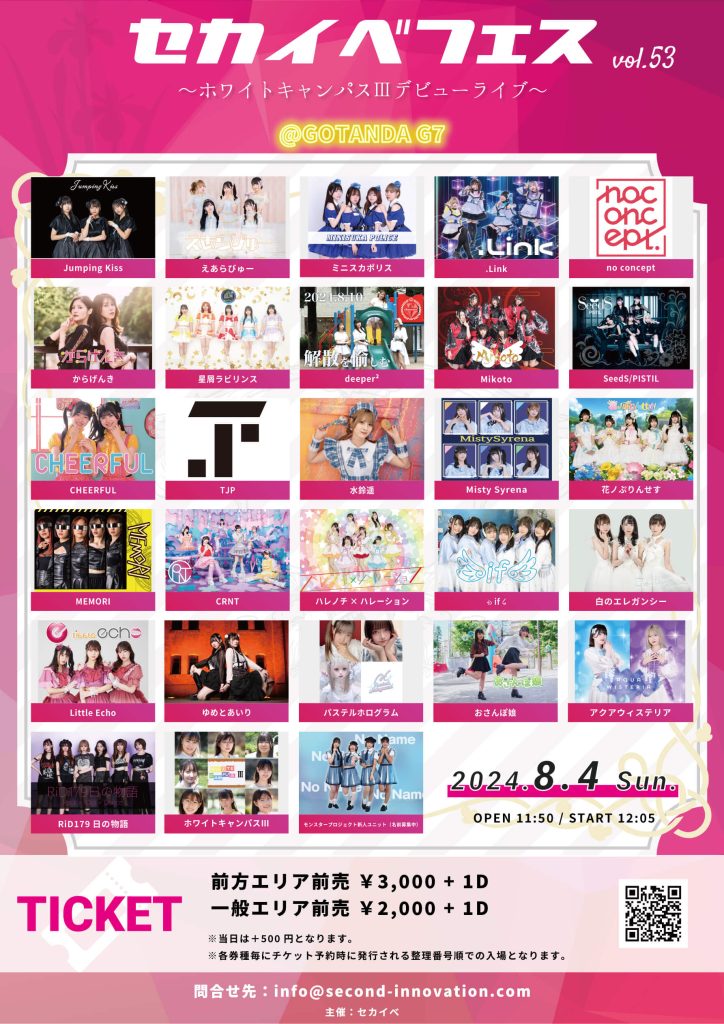 8月4日(日)セカイべフェス vol.53 〜ホワイトキャンパスⅢデビューライブ〜