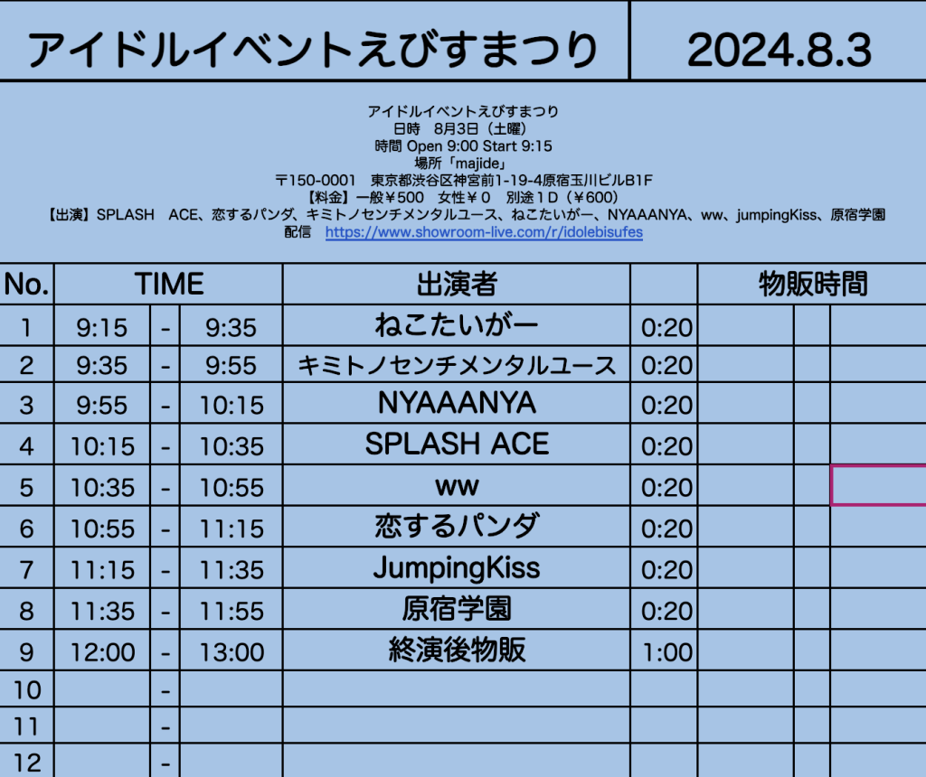 8月3日(土)アイドルイベントえびすまつり