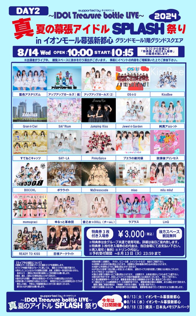 8月14日(水) IDOL Treasure bottle LIVE~真夏の幕張アイドルSPLASH祭り~【DAY2】