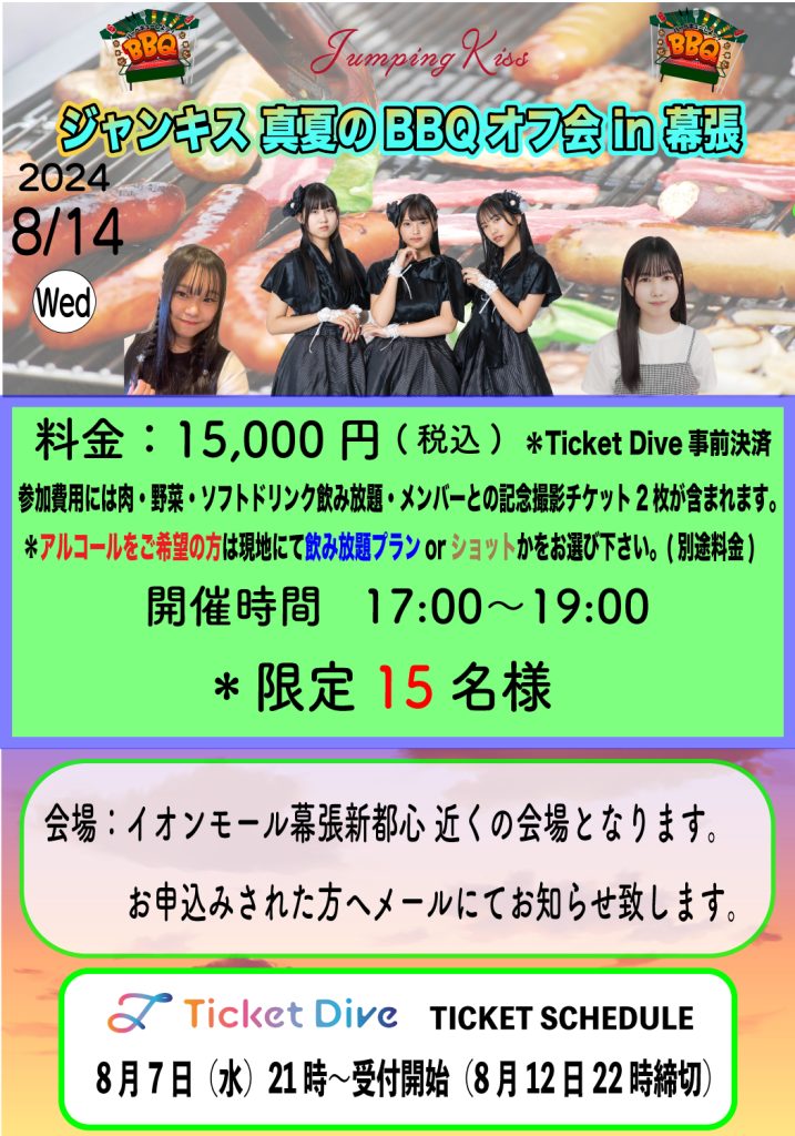 *参加料金には肉、野菜、ソフトドリンク飲み放題、メンバーとの記念撮影チケット2枚が含まれます。撮影タイムもあります!