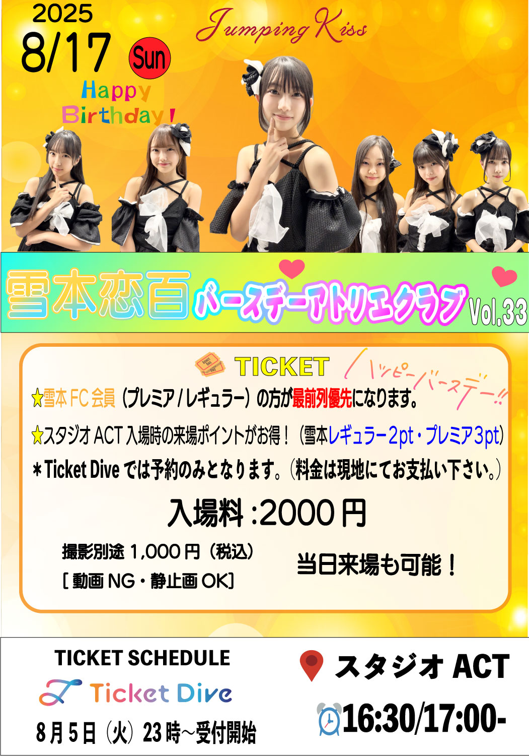 8月17日(日)雪本恋百 バースデーソロ撮影会