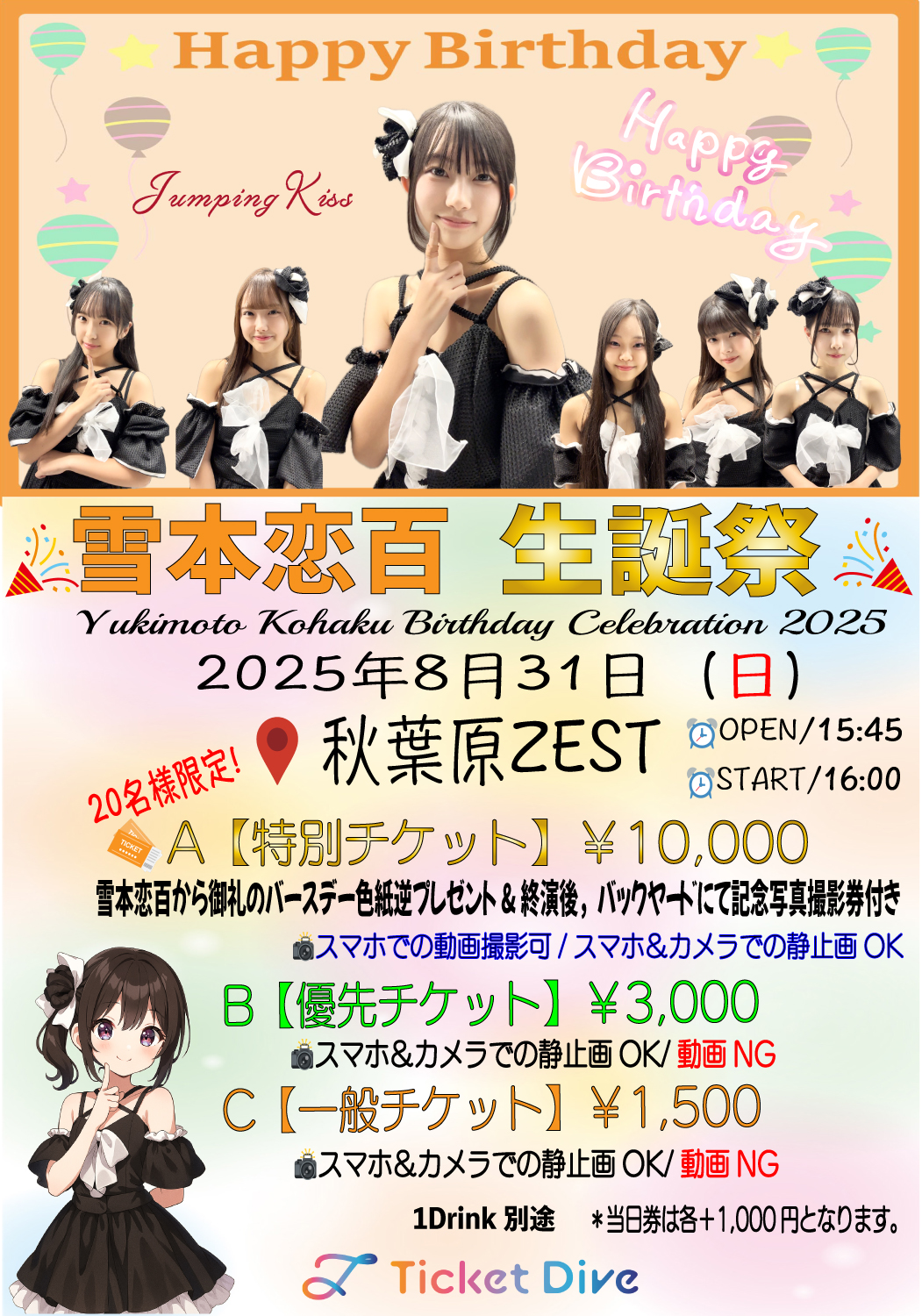 8月31日(日)JumpingKiss 雪本恋百 生誕祭~Yukimoto Kohaku Birthday Celebration 2025~