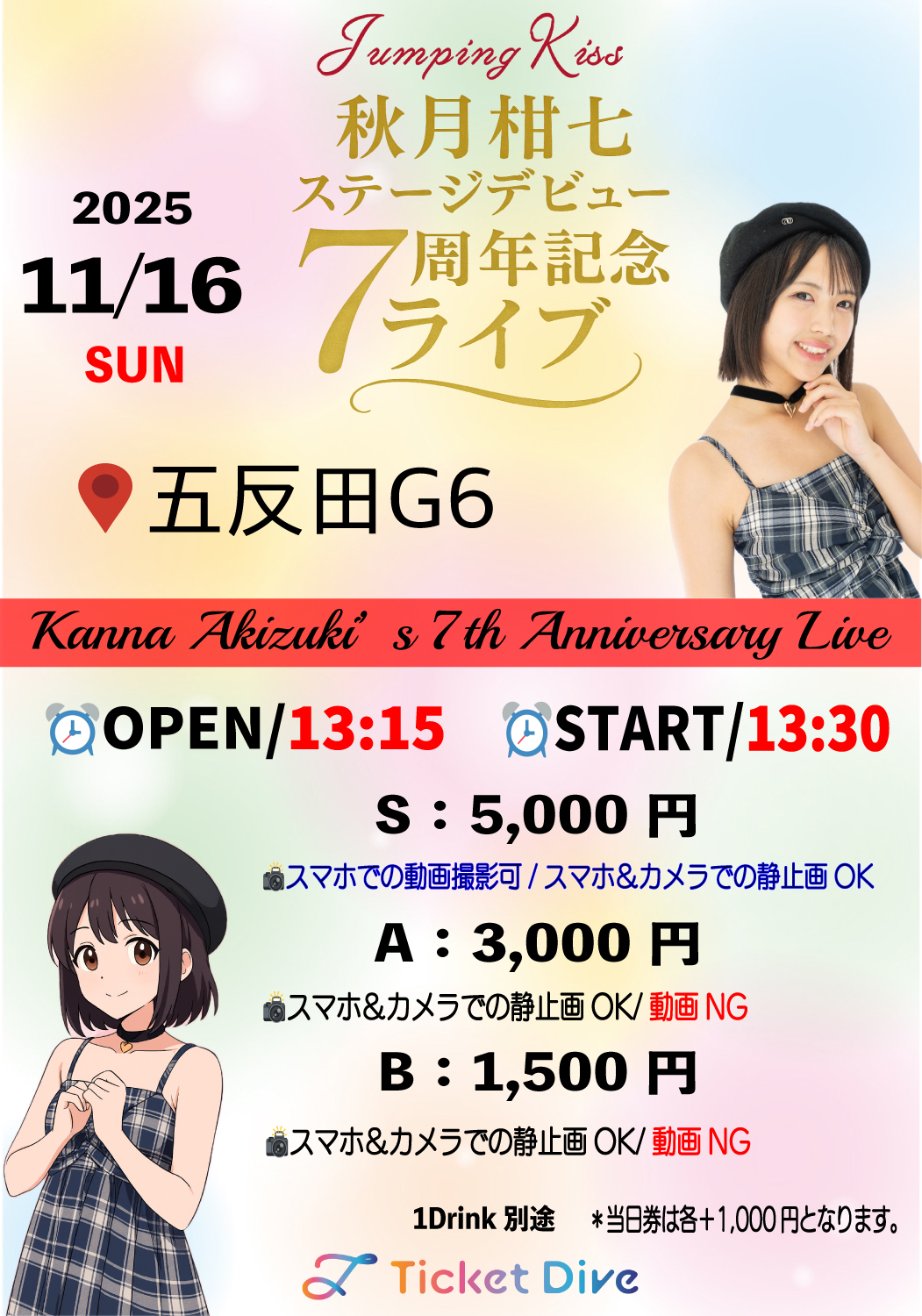 10月16日(日)JumpingKiss 秋月柑七 ステージデビュー7周年記念ライブ