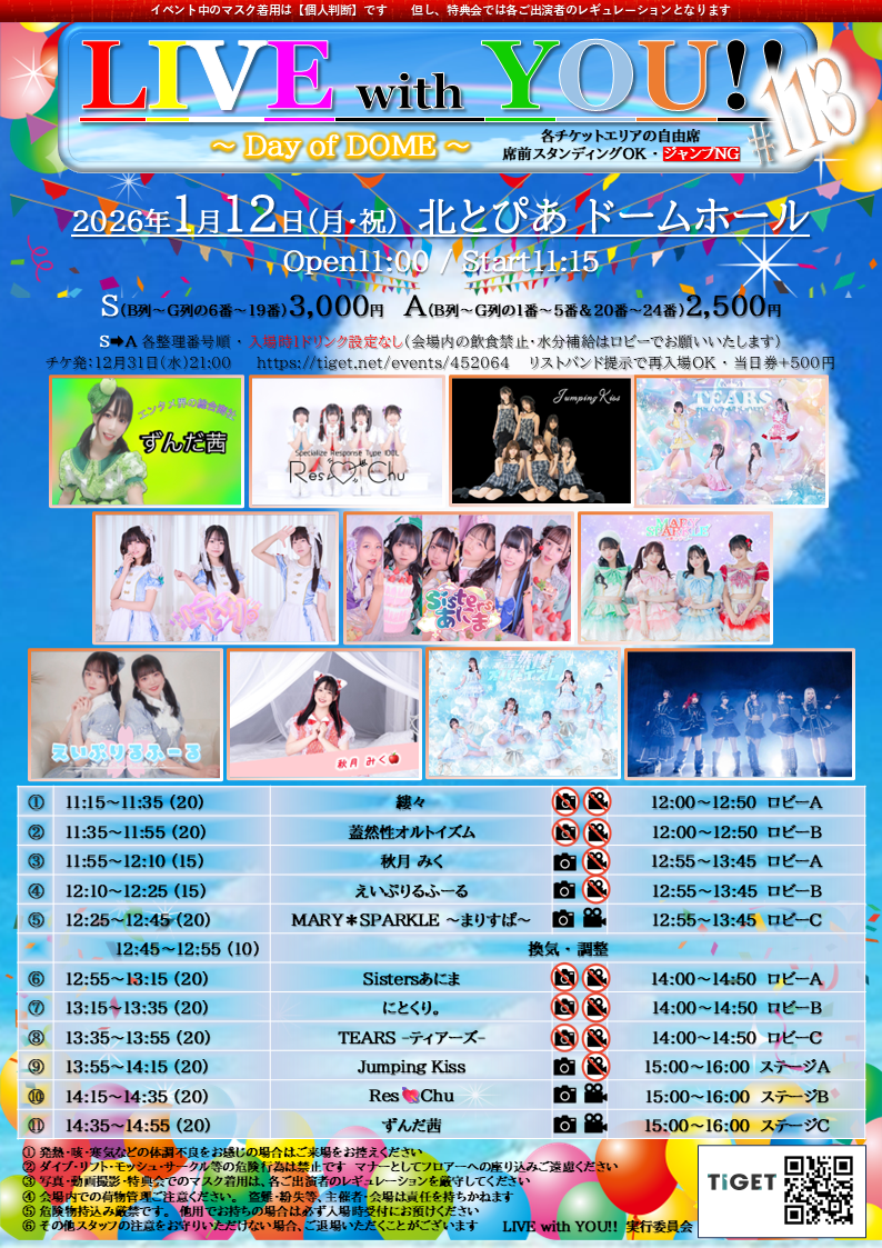 1月12日(月/祝)LIVE with YOU!! #113~ Day of DOME ~