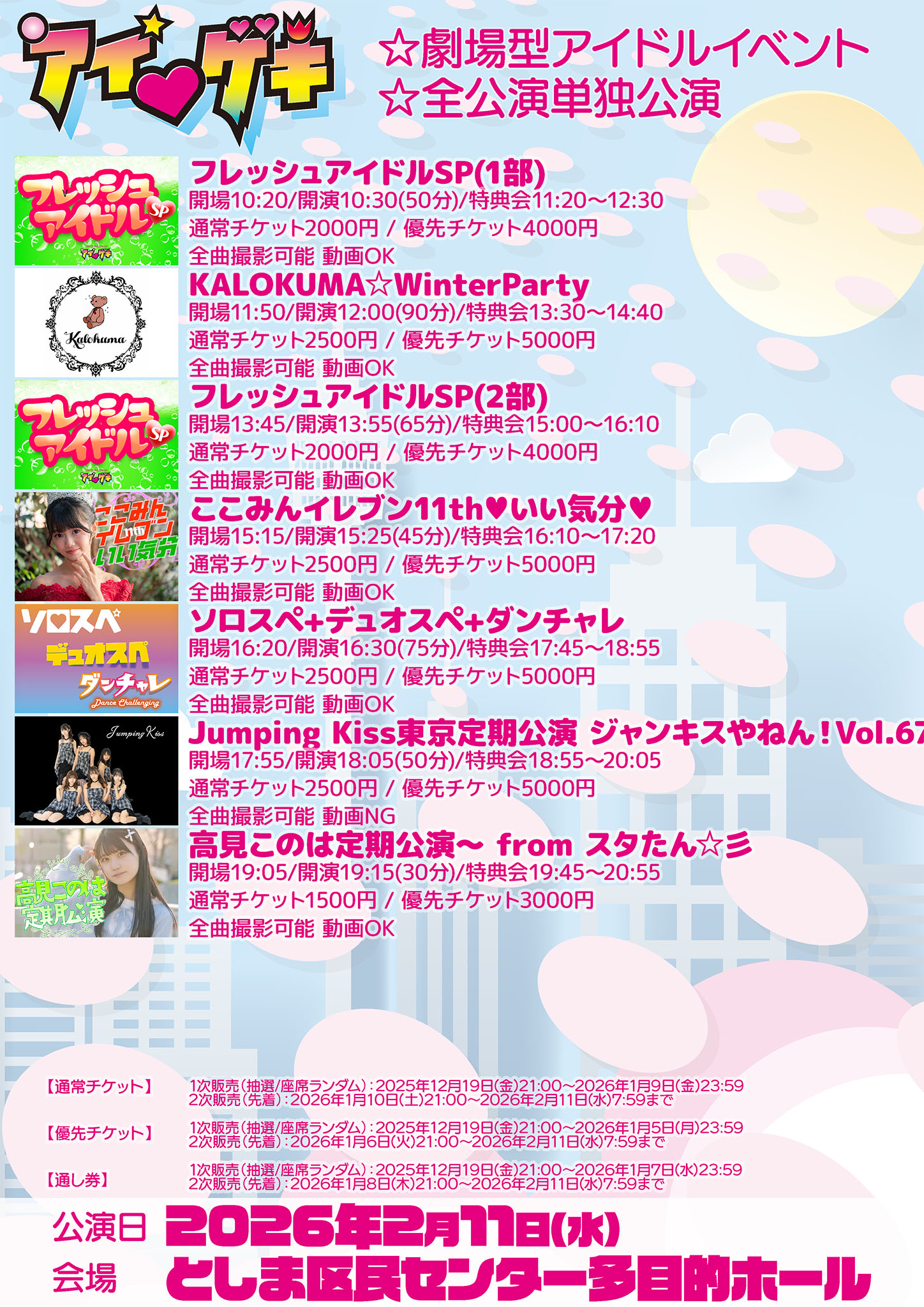 ※出演アーティスト、本編&特典会時間はメンバーの体調不良やスケジュールの都合等の理由により、変更になる可能性がありますので予めご了承下さい。その際の返金等は一切応じられませんのでご了承下さい。