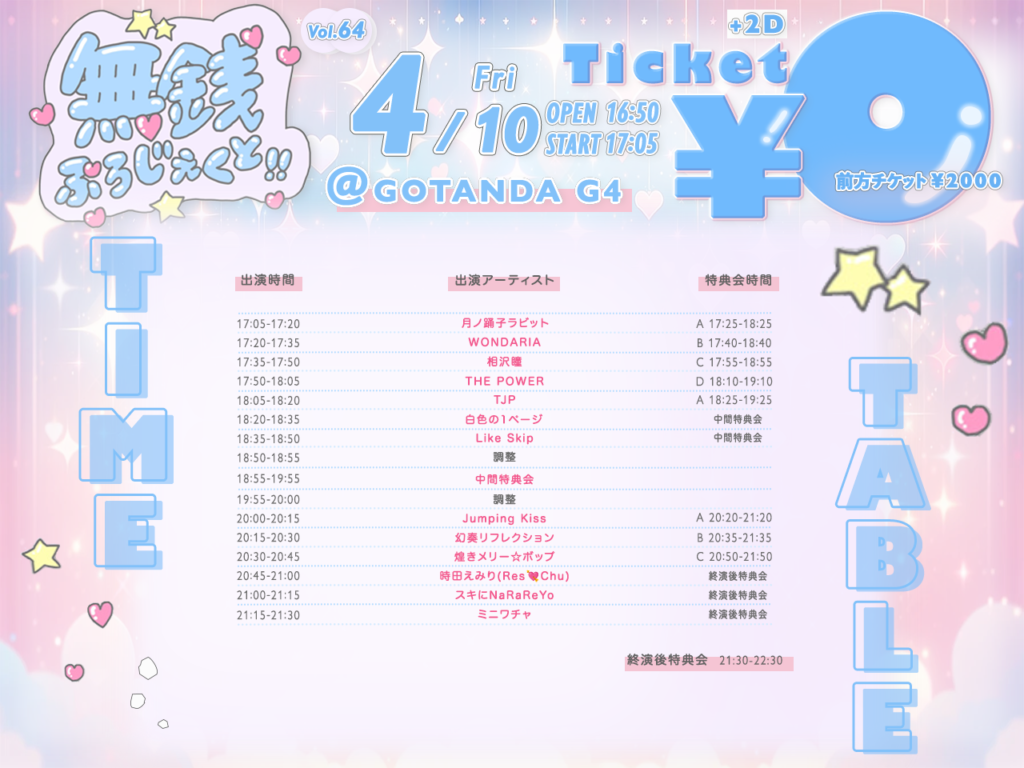 4月10日(金)無銭ぷろじぇくと!! vol.64