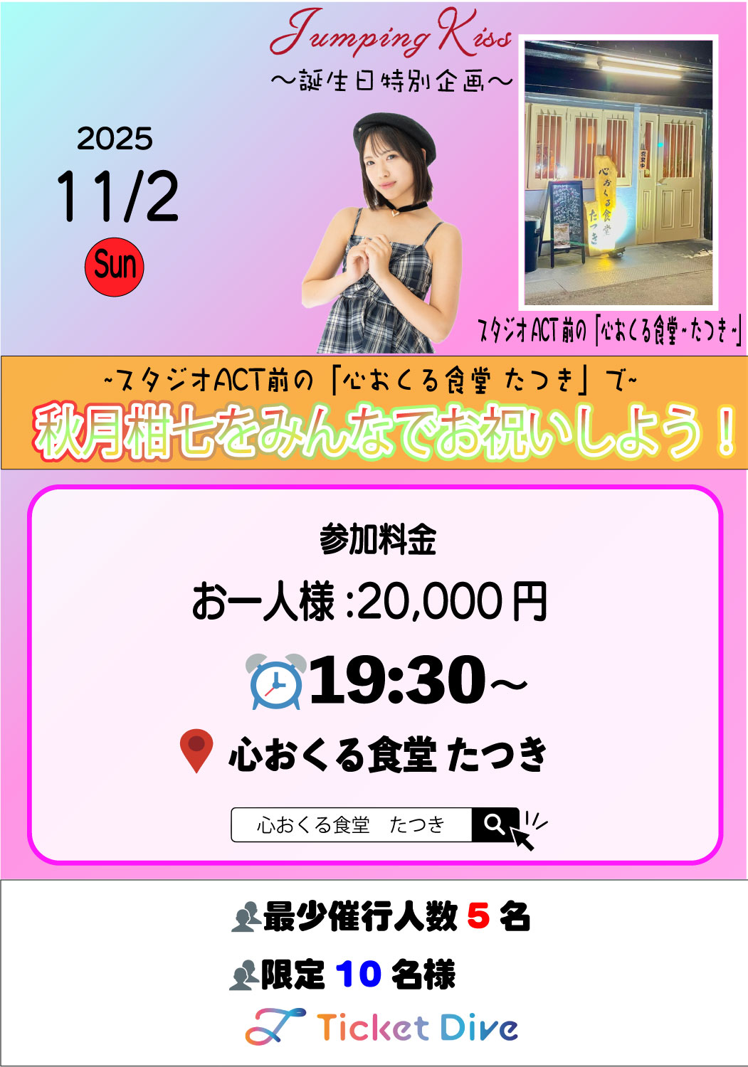【大阪】秋月柑七 誕生日特別企画!🎂 🍽️スタジオACT前の「心おくる食堂 たつき」で秋月柑七をみんなでお祝いしよう!🍽️