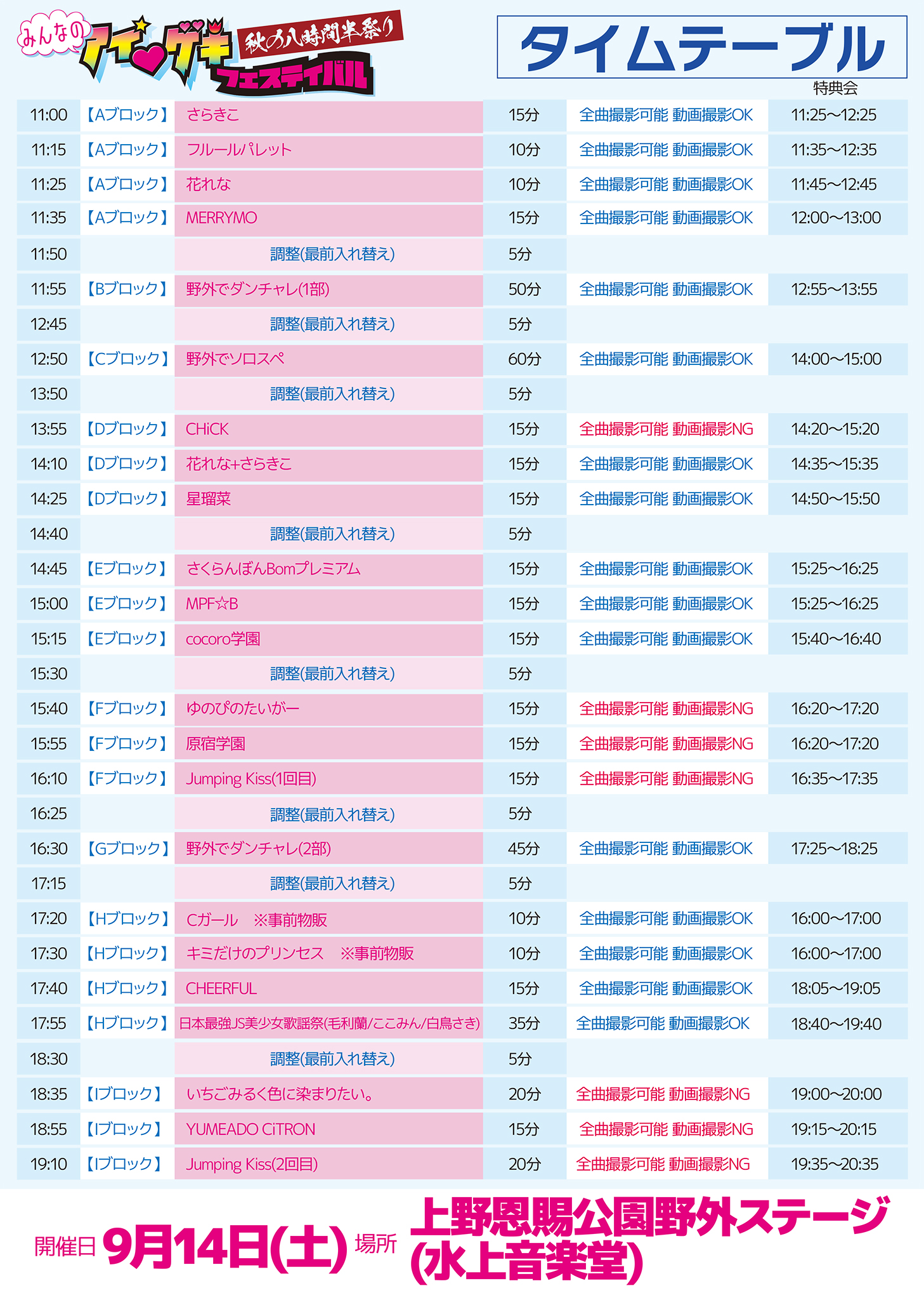 13:55 CHiCK(15分)※動画NG特典会14:20~15:20)