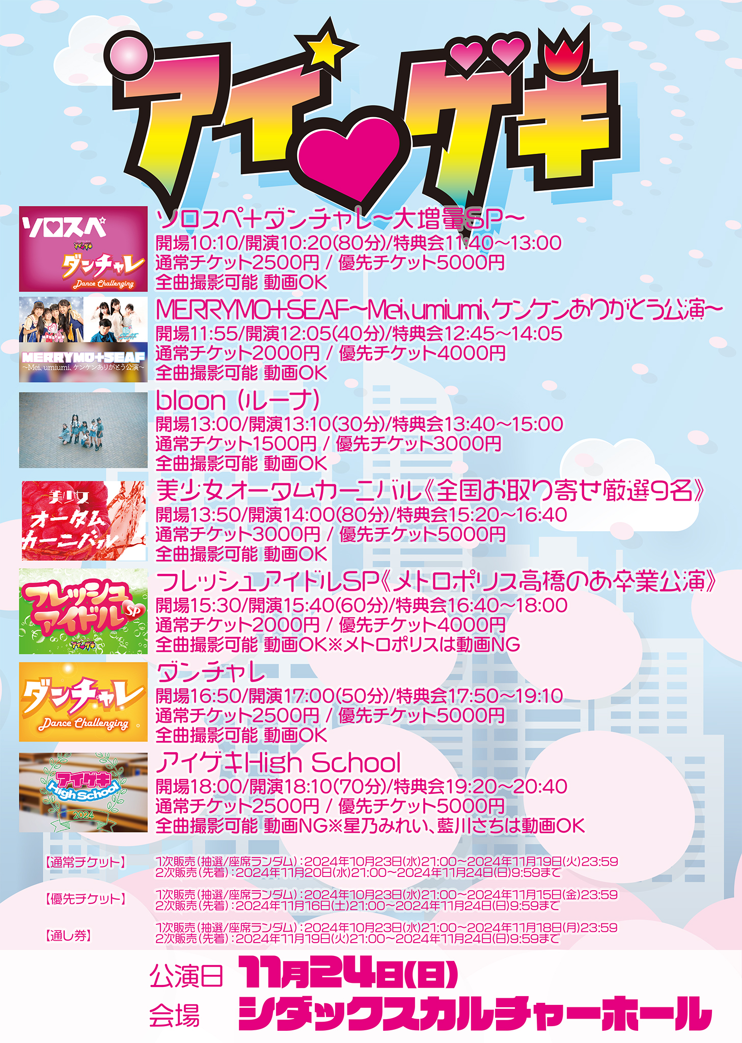 ・当日現金での入場/当日券(通常チケット、優先チケット、通し券)あり