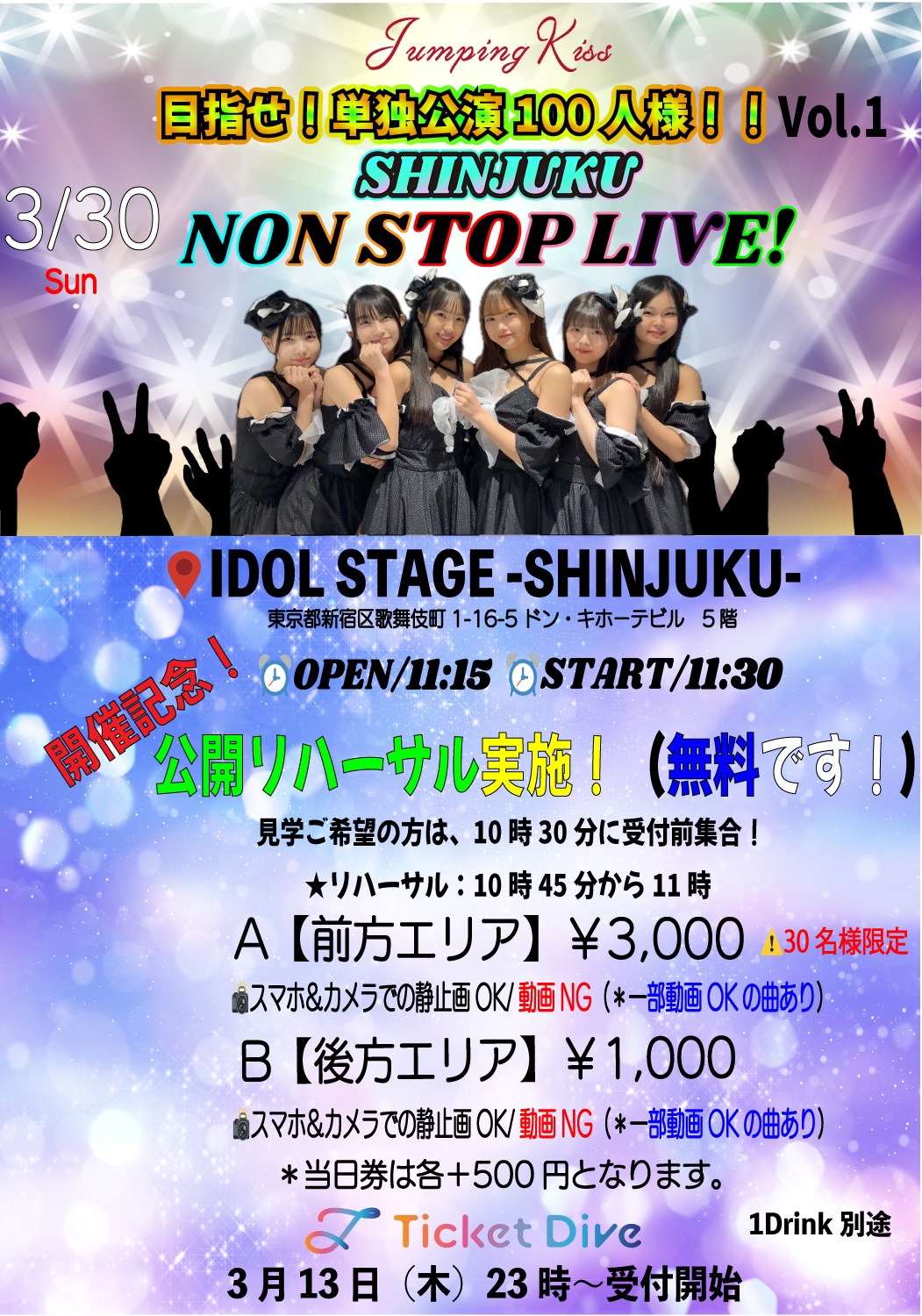 【東京】目指せ!単独公演100人様!!Vol.1 〜 JumpingKiss SHINJUKU NON STOP LIVE!〜