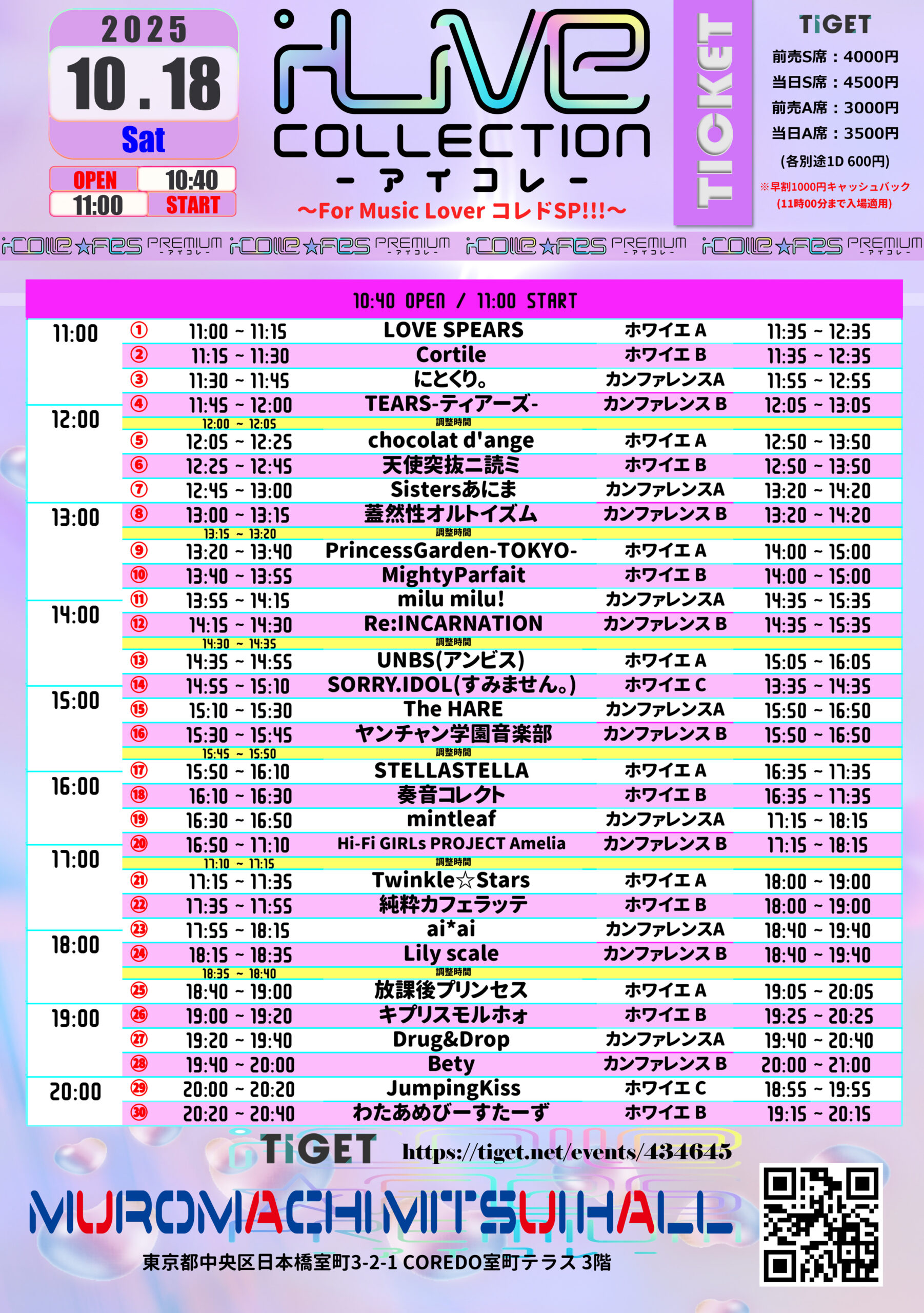 ● 開演時間や出演時間の変更、出演予定グループの変更、ならびに出演者様の出演見合わせ及び出演者の欠席などによる払い戻しはございません。