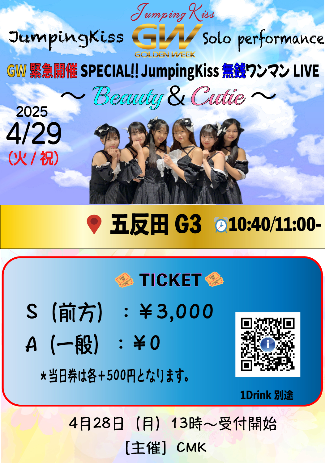 GW緊急開催SPECIAL‼ JumpingKiss無銭ワンマンLIVE 【~Beauty&Cutie~】