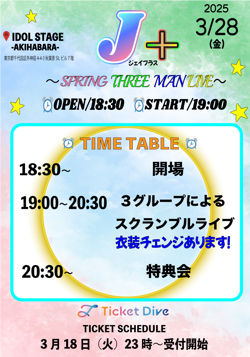 19:00~20:30 3グループによるスクランブルライブ(衣装チェンジあります!)
