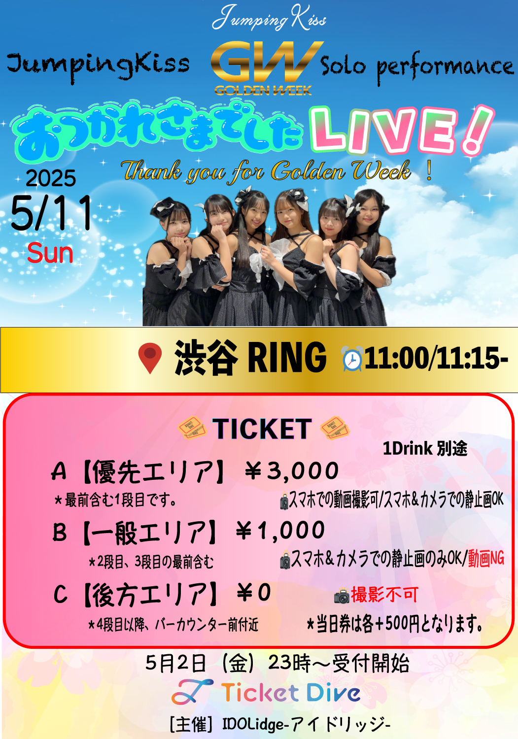 【東京】JumpingKiss単独公演〜ゴールデンウィークおつかれさまでした LIVE!〜