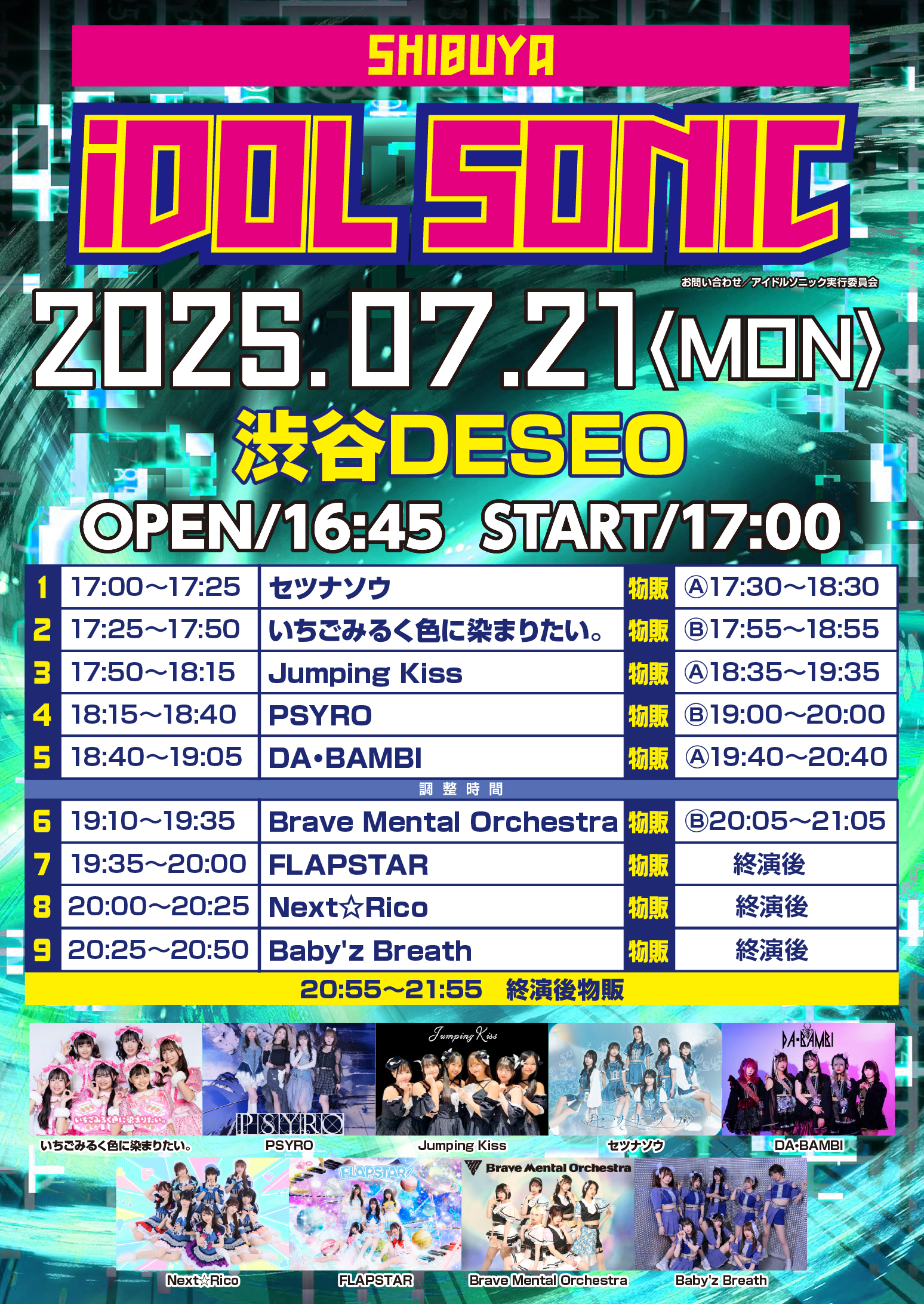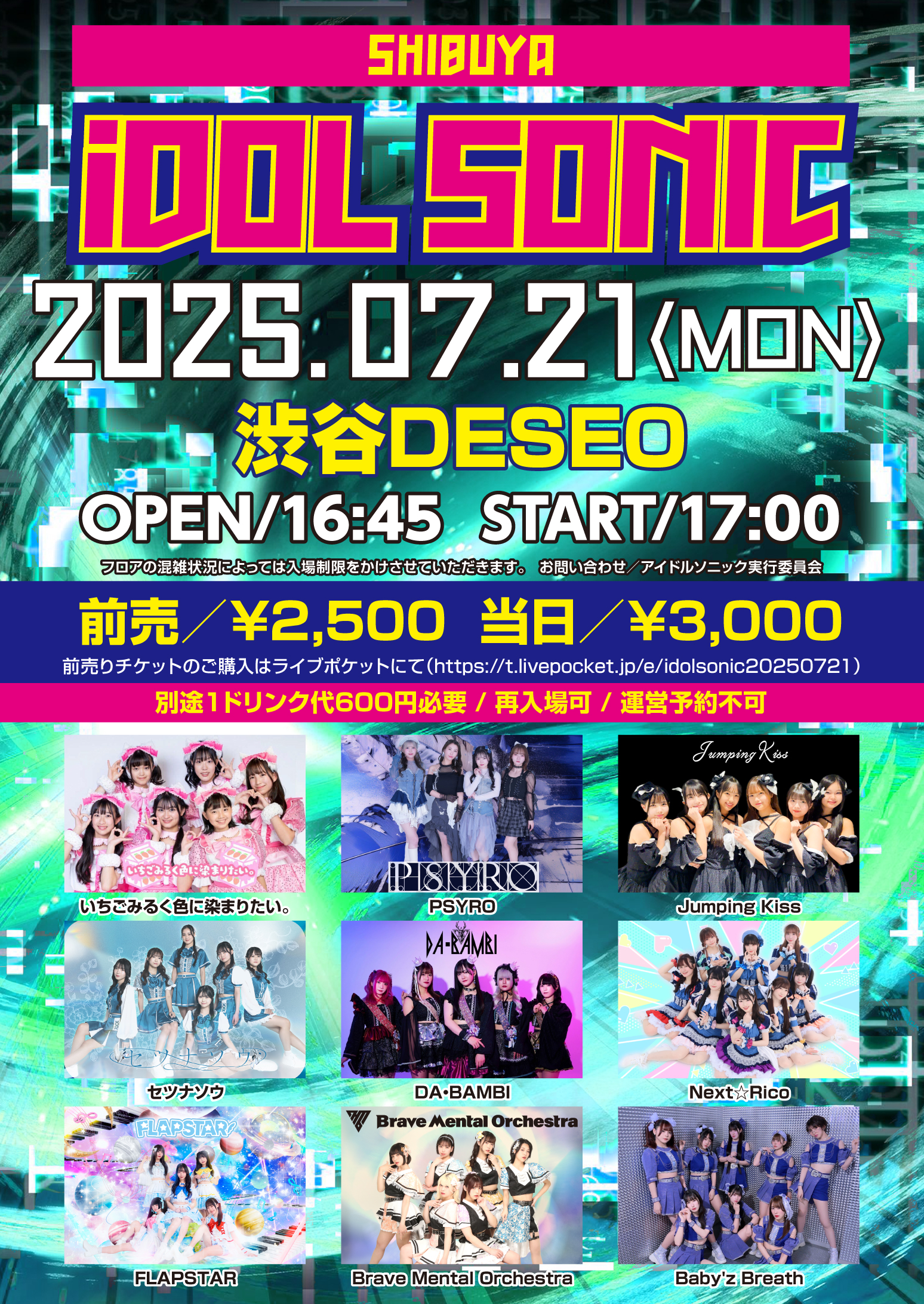 ※再入場可(再入場時に会場側に1ドリンク代をお支払いいただいております)