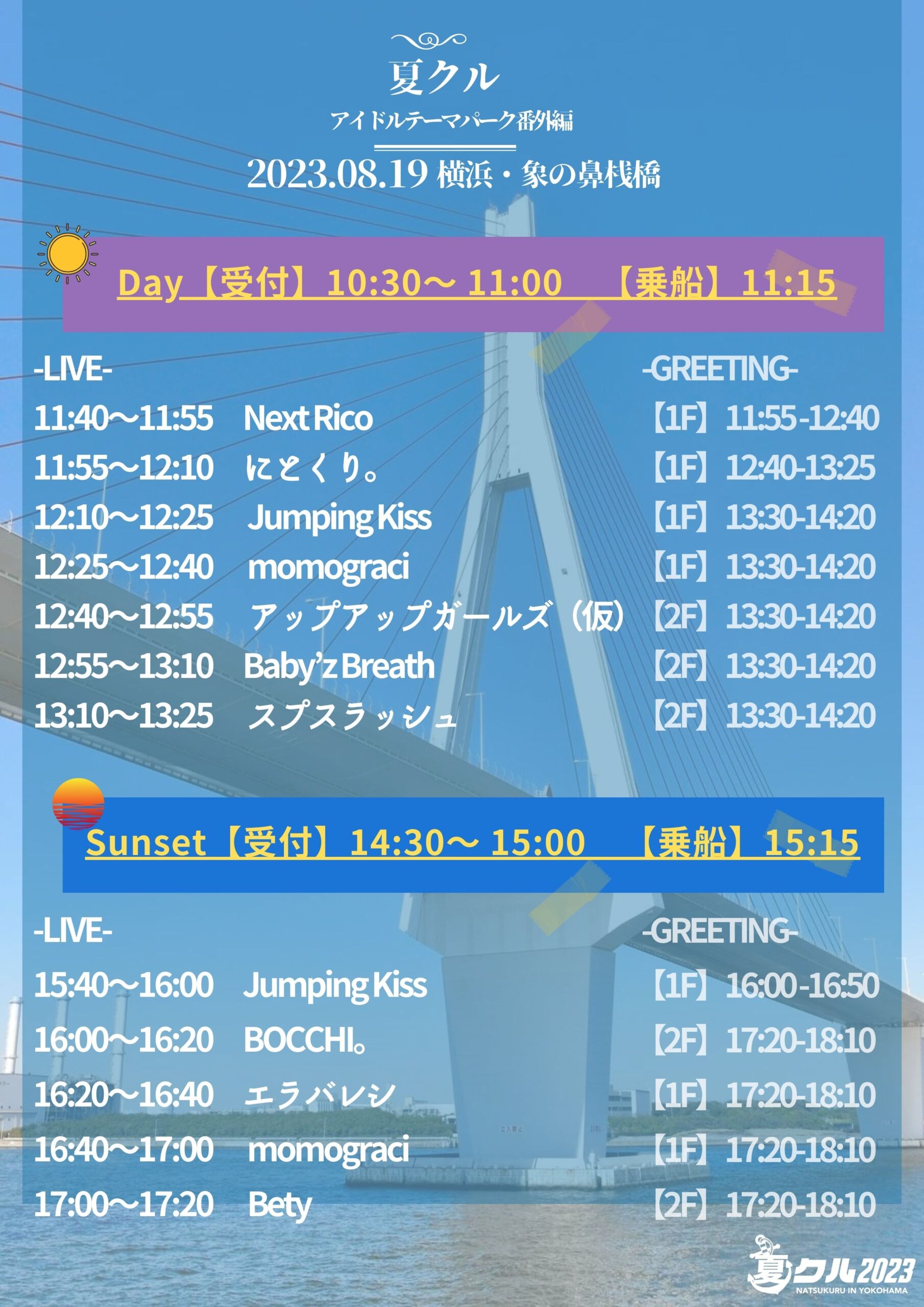 [Day]受付10:30~11:00 乗船11:15 LIVE/11:30~13:30 特典会/13:30~