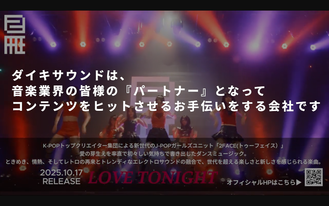ダイキサウンドは、音楽業界の皆様の『パートナー』となってコンテンツをヒットさせるお手伝いをする会社です